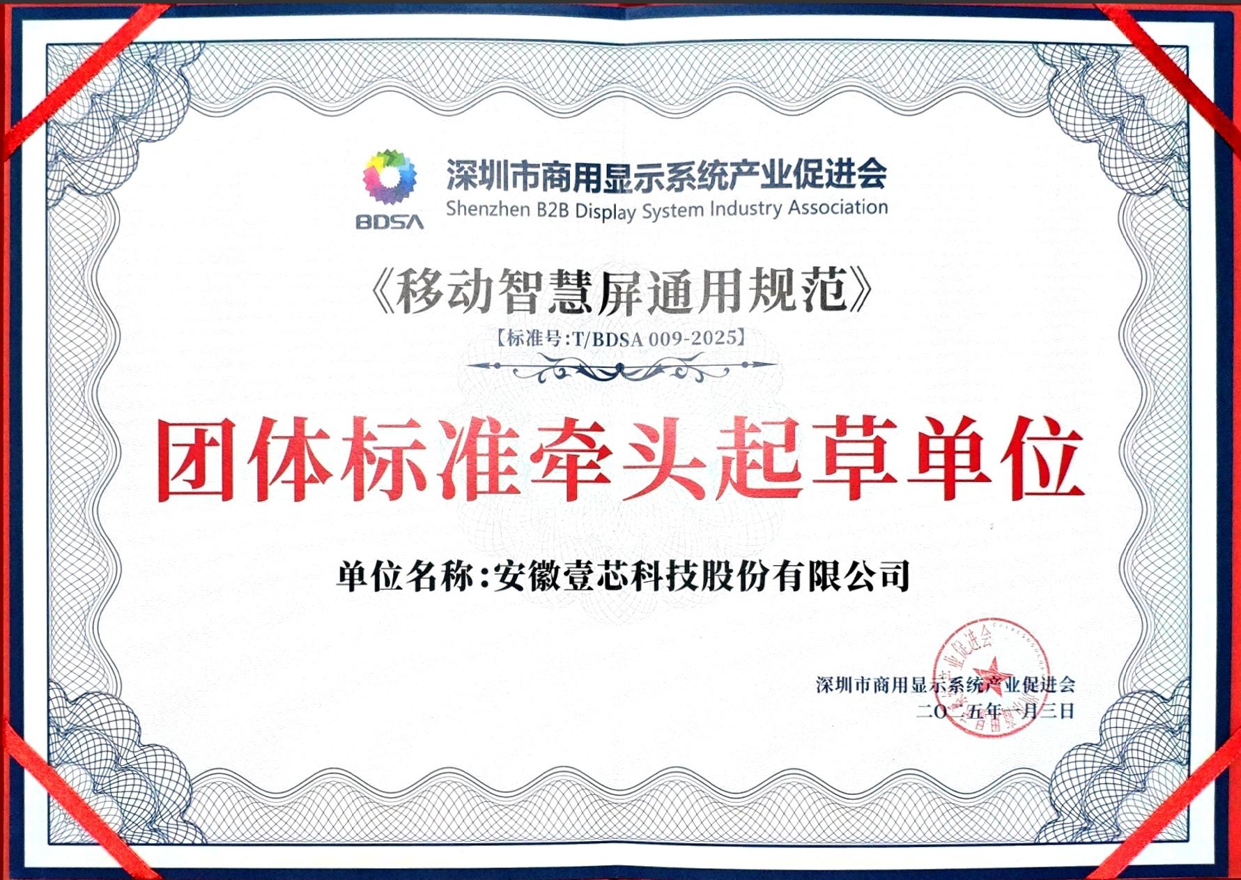 更值得瞩目的是,壹芯科技作为行业标准制定者,牵头起草的《移动智慧屏通用规范》(T/BDSA 009-2025)于今年2月正式实施,为行业树立六大技术标杆,该标准的制定实施标志着移动智慧屏产业进入规范化发展新阶段。